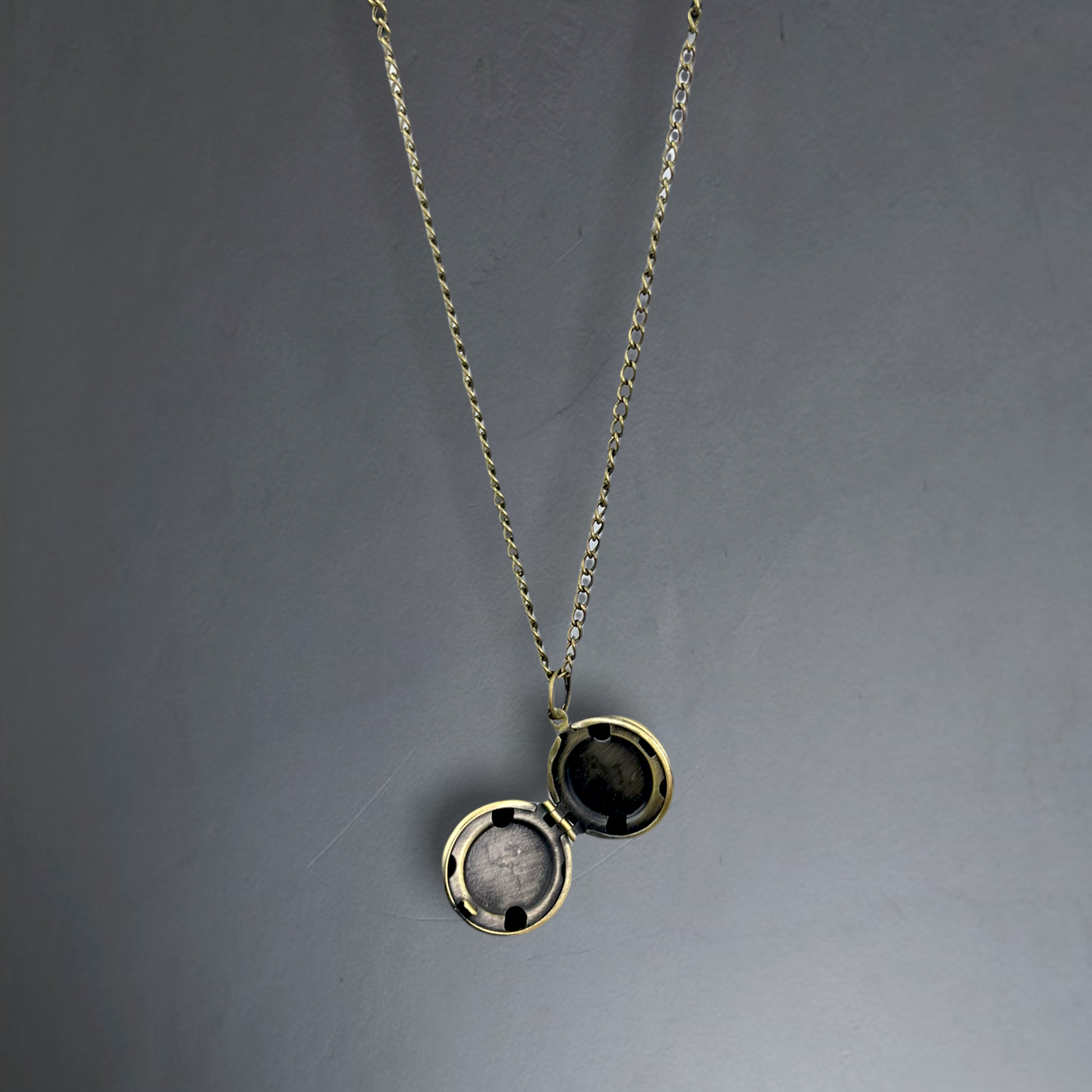 Het ontwerp is klassiek en helder, zonder versiering die afleidt. In het medaillon bewaar je een kleine foto of herinnering, discreet en dichtbij gedragen. De ketting heeft een lengte van ongeveer 70 cm en valt rustig over kleding. Het compacte formaat van het medaillon (±2 cm) maakt dit stuk draagbaar, elke dag opnieuw.