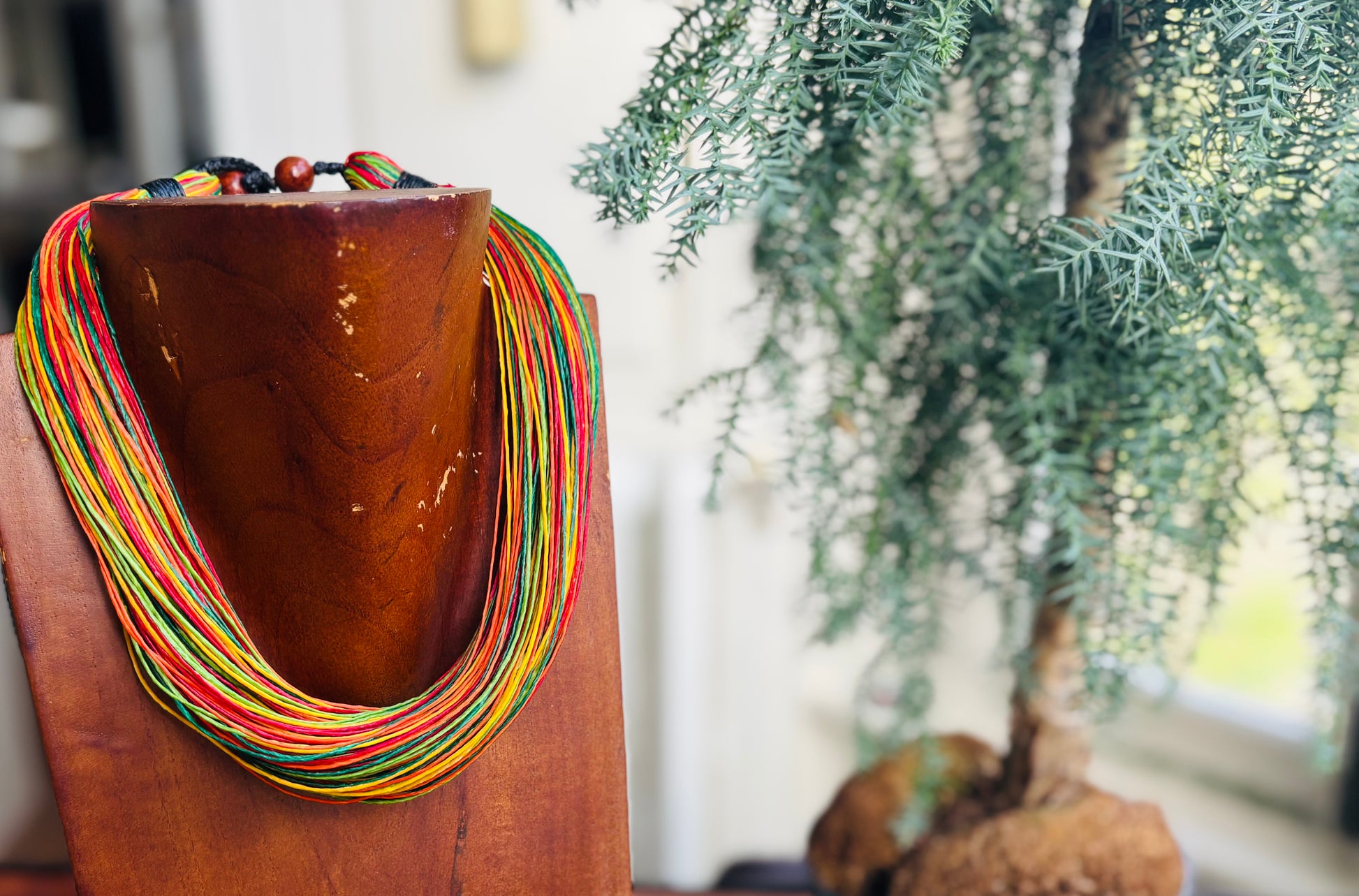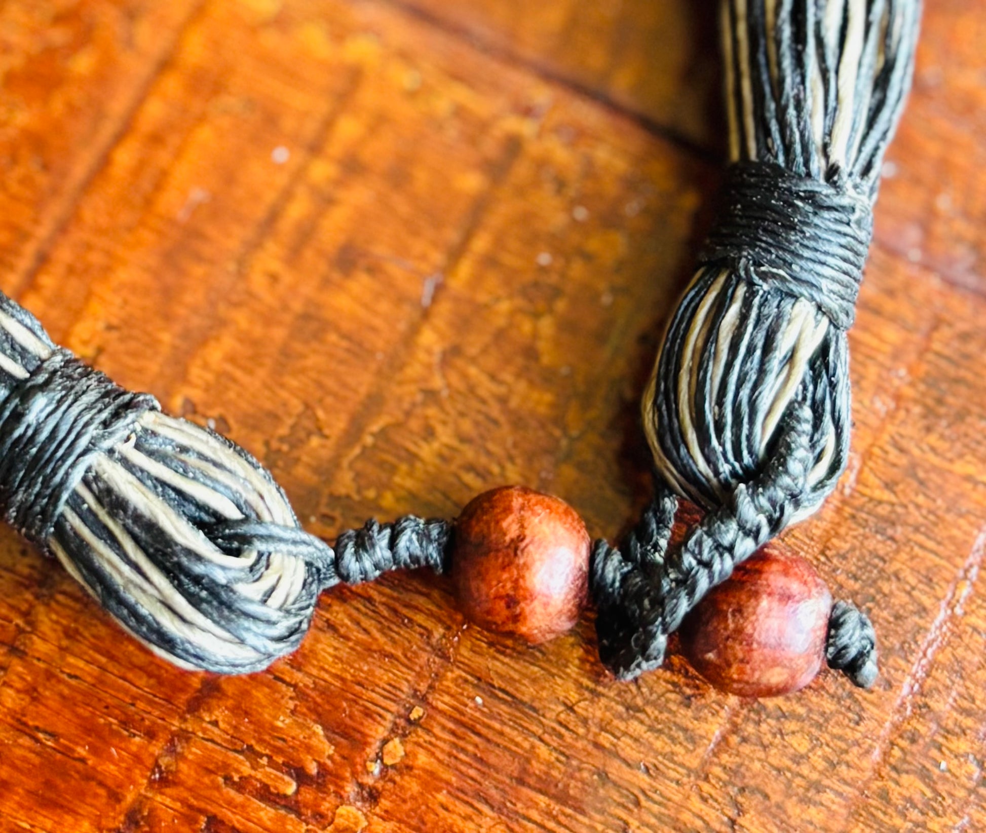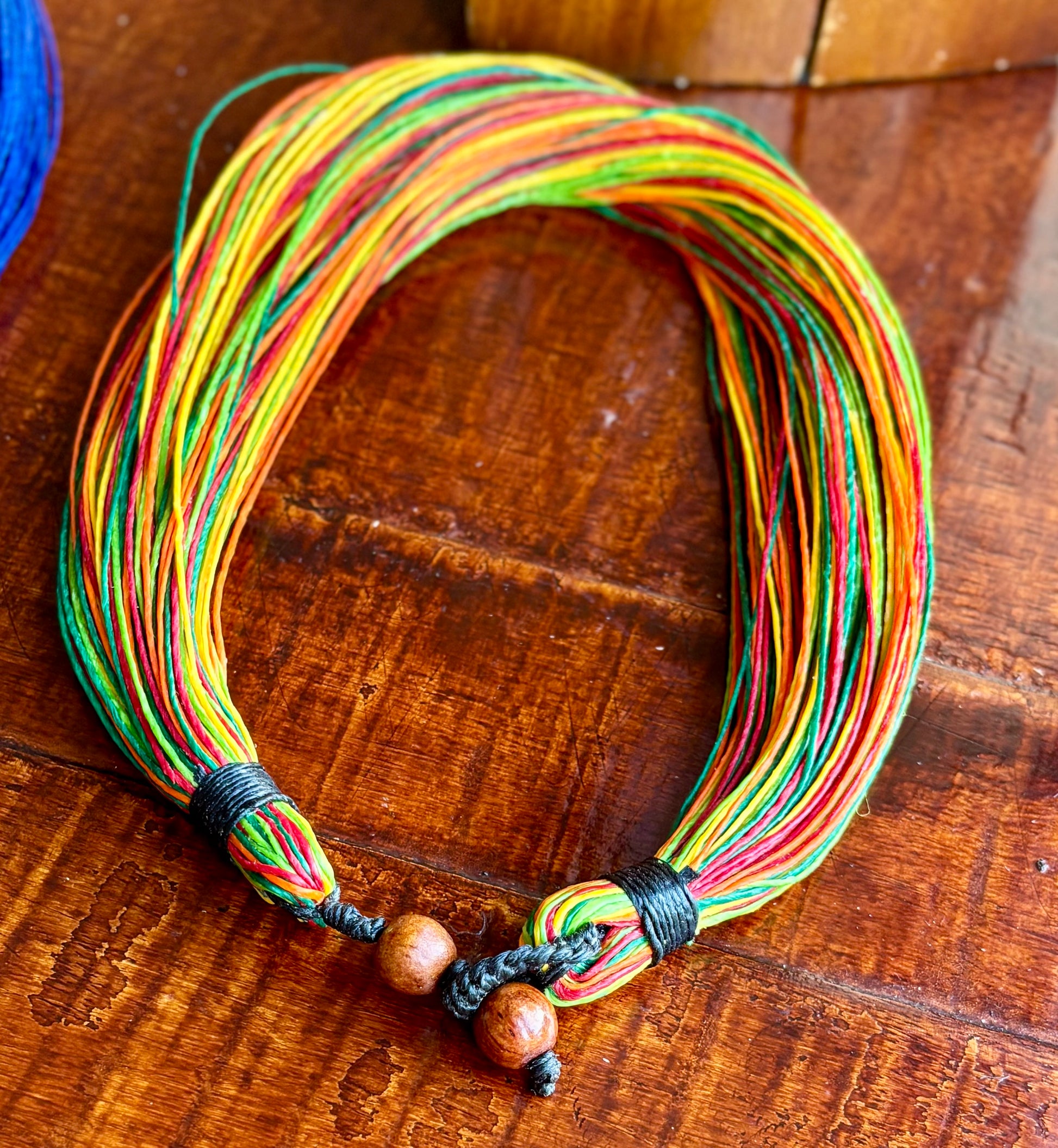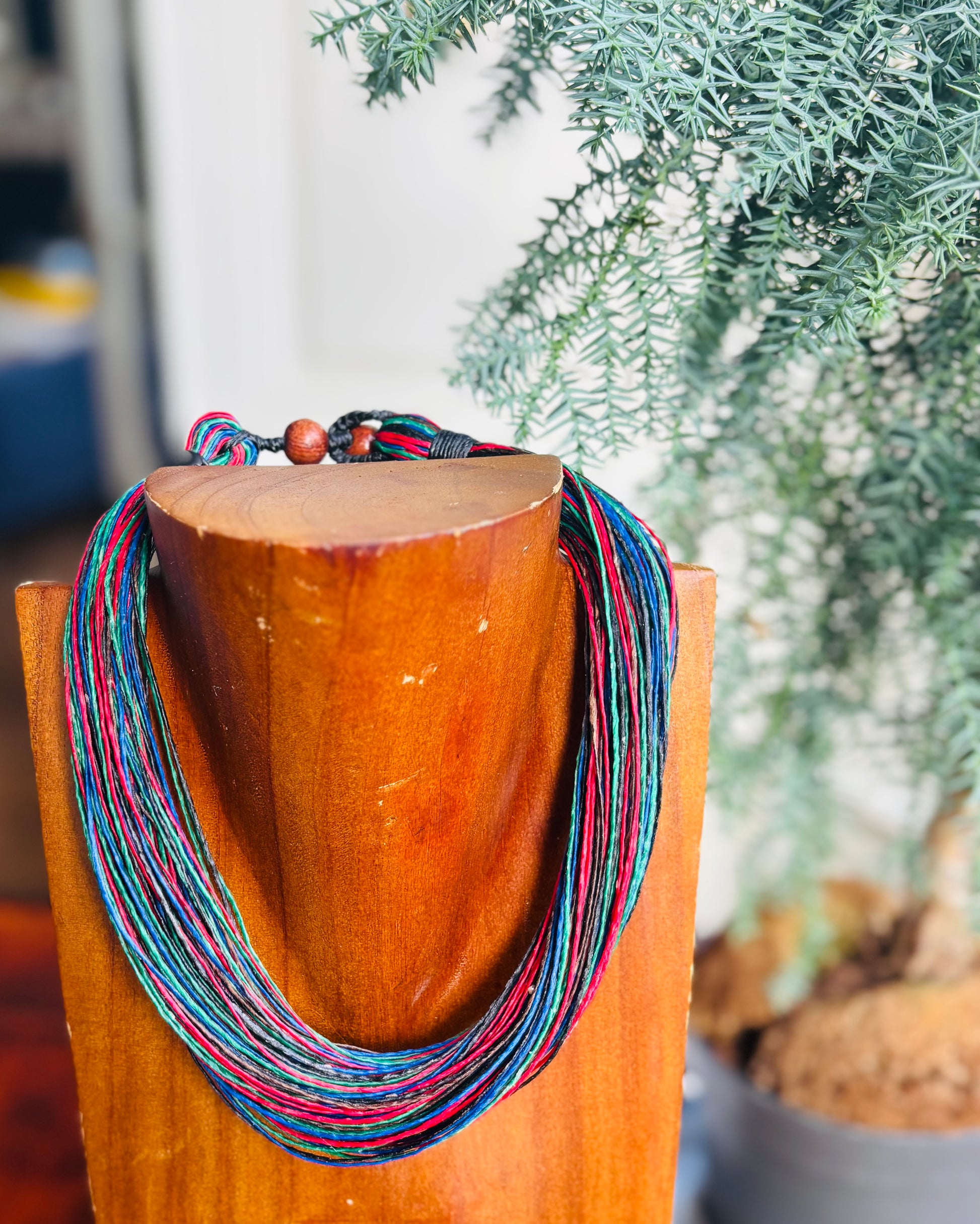 ✔️ Handgemaakt in Indonesië ✔️ Materiaal: gewaxt katoen & hout ✔️ Licht, soepel en vormvast ✔️ Elke ketting is uniek in kleur en karakter