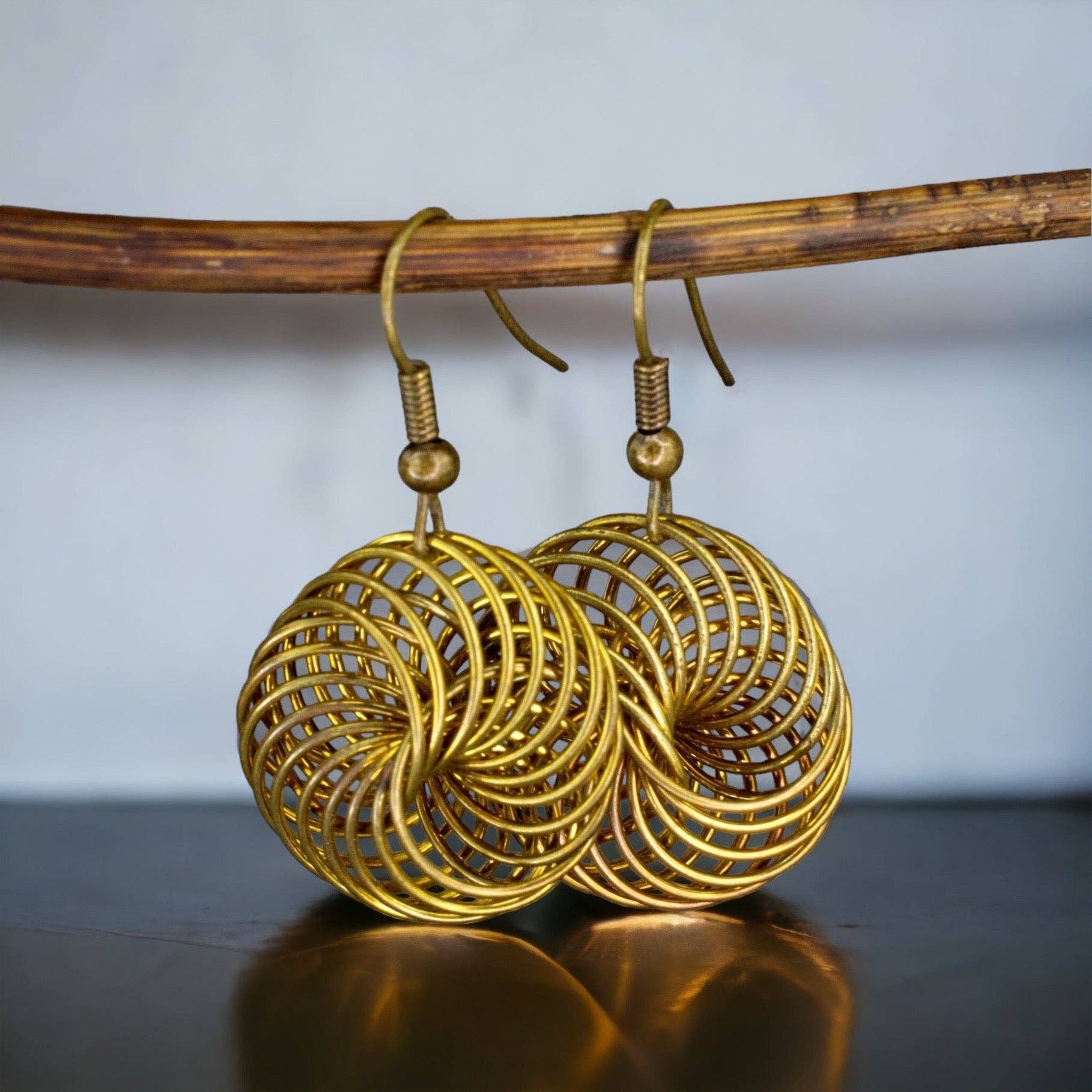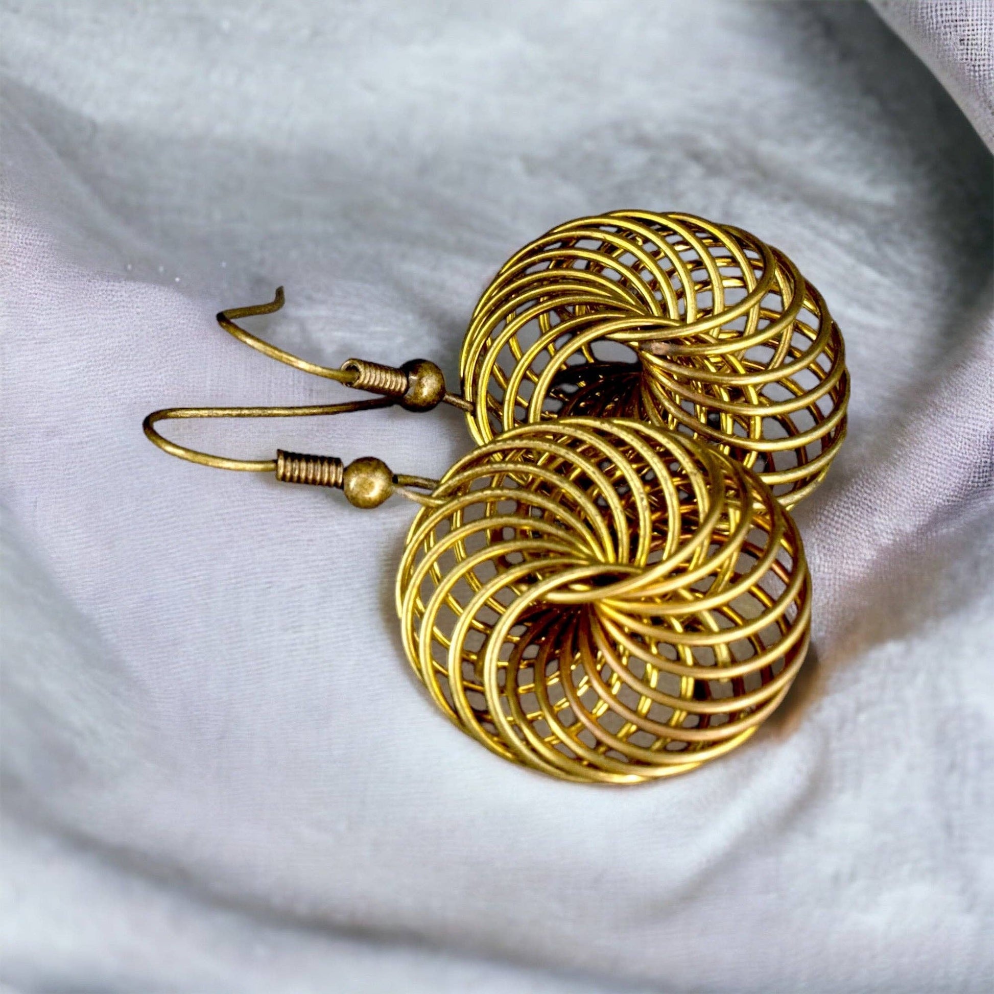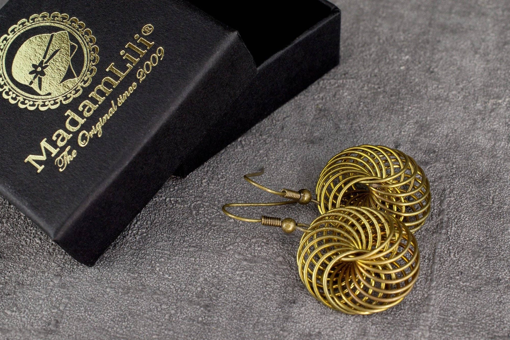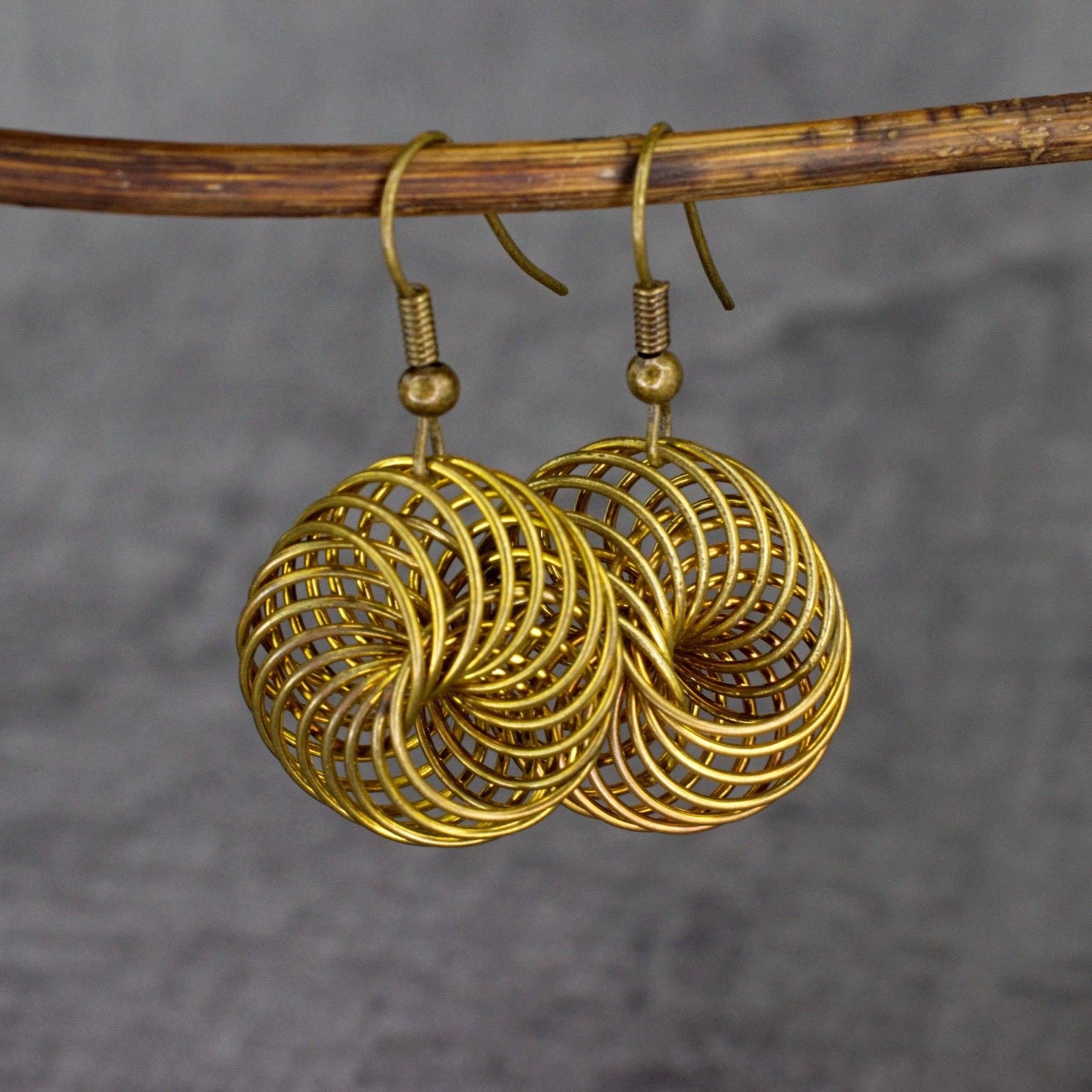 Bronzen oorbellen met echte vintage hangers in de vorm van een open nest.