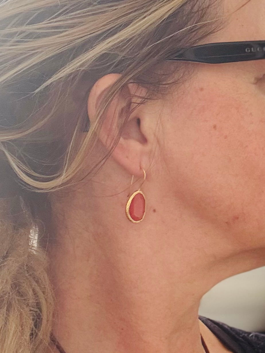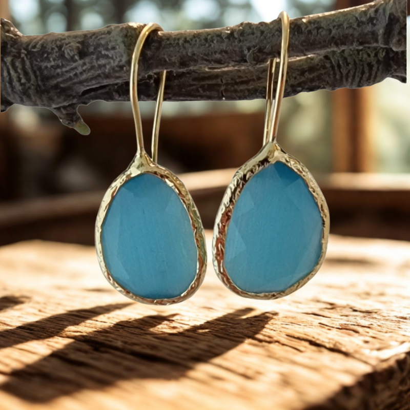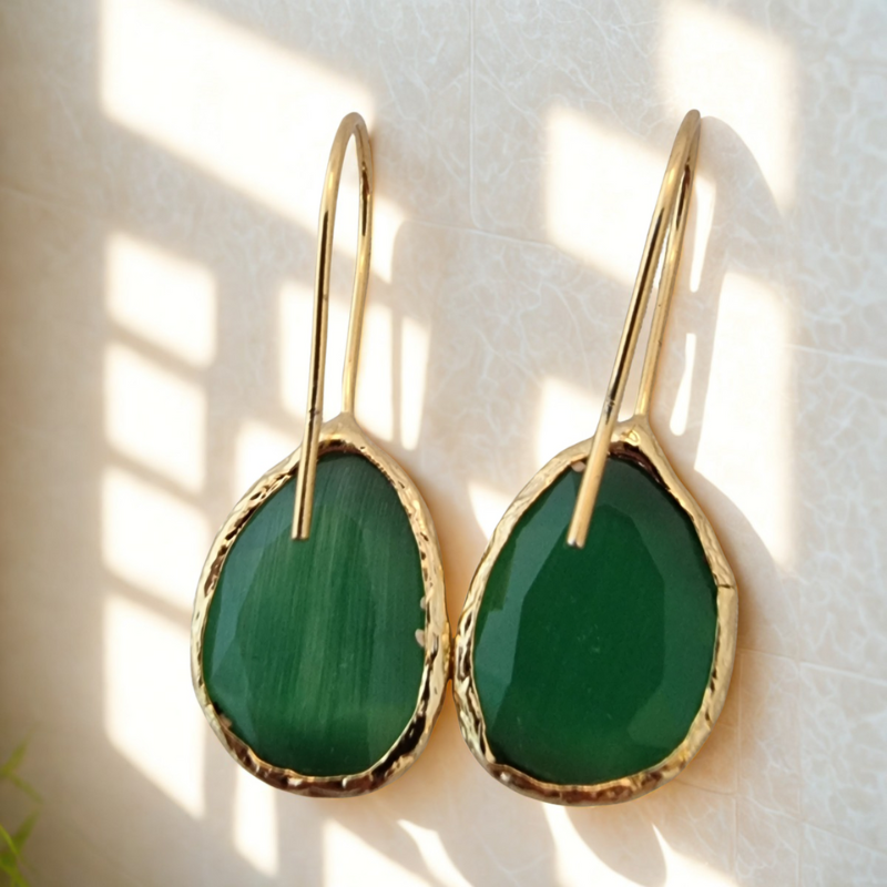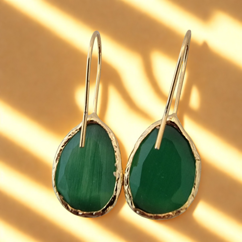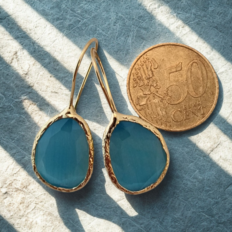 Deze oorringen met synthetische cateye steen zijn gezet in een 18 karaat goud vergulde messing setting. Licht, draagbaar en altijd stijlvol – perfect om solo te dragen of te combineren met andere sieraden.