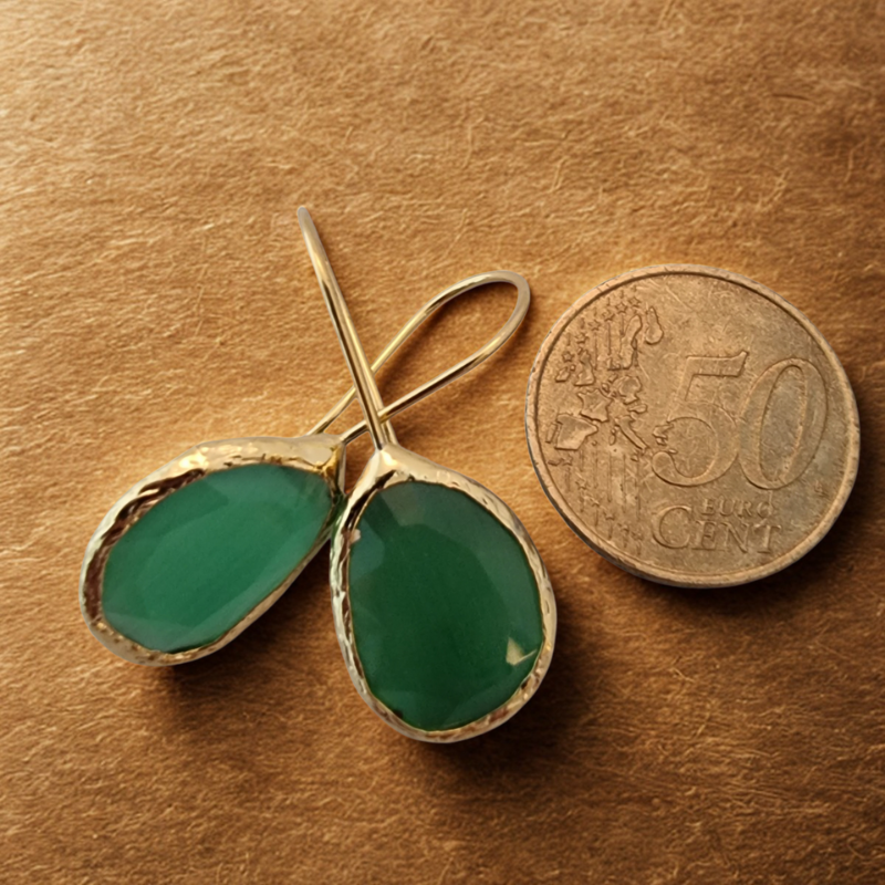 Materiaal: cateye steen (synthetisch), messing 18K verguld